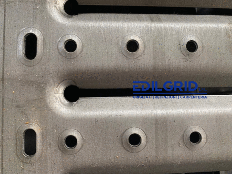 - Antisdrucciolo: grazie ai fori imbutiti verso l’alto, il gradino è progettato per garantire una presa sicura. Abbiamo anche aggiunto un’ulteriore asola, rendendolo ancora più antiscivolo.